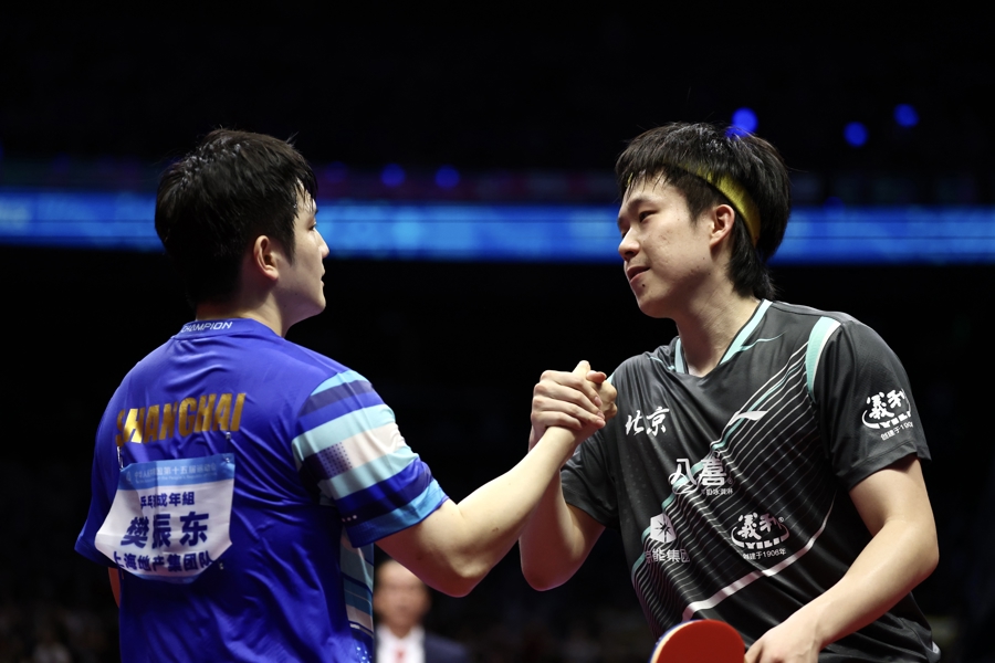 与此同时,在另一张球台上,林诗栋4比1击败袁励岑,职业生涯第一次闯进全运会男单决赛——这个20岁出头的海南男孩,被当地媒体戏称为“全村的希望”。赛后他很真诚地说:“第一次进全运会决赛,能在这样的舞台上和东哥交手,是很可贵的学习机会。”